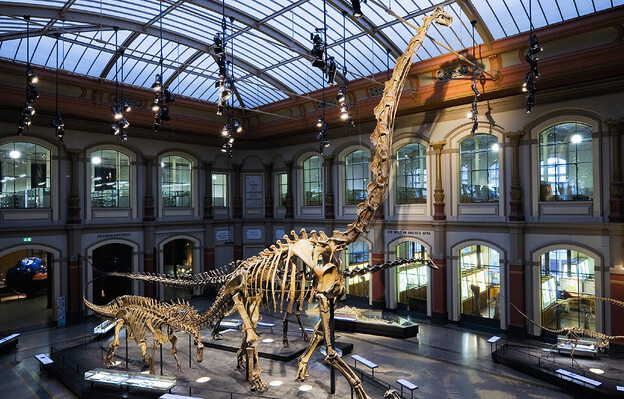 柏林自然历史博物馆馆藏的恐龙种类最全。大部分恐龙骨骼是20世纪从坦桑尼亚挖掘的。第一展厅的腕龙,身高41英尺5英寸,是世界所有馆藏中最高的恐龙。其至今仍保持着世界吉尼斯纪录。该博物馆中藏有世界上最重要的始祖鸟化石,展示了鸟类与恐龙之间的某种关联。