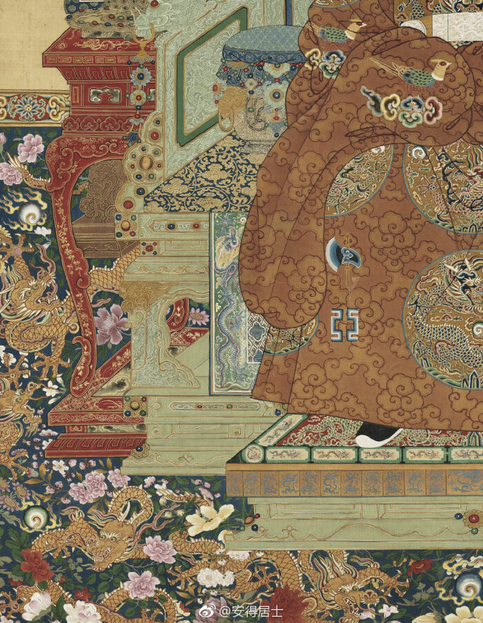 明 佚名 熹宗悊皇帝坐像轴,绢本设色,纵203.6厘米,横156.9厘米,现藏于台北故宫博物院。