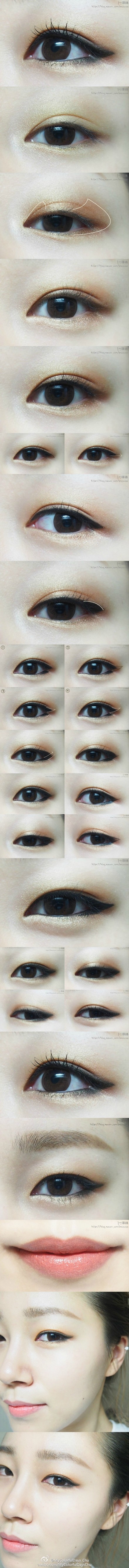 详细的韩系眼线教程~~眼线胶用的是Tony Moly,眼影是MAC goldmine和amberlights