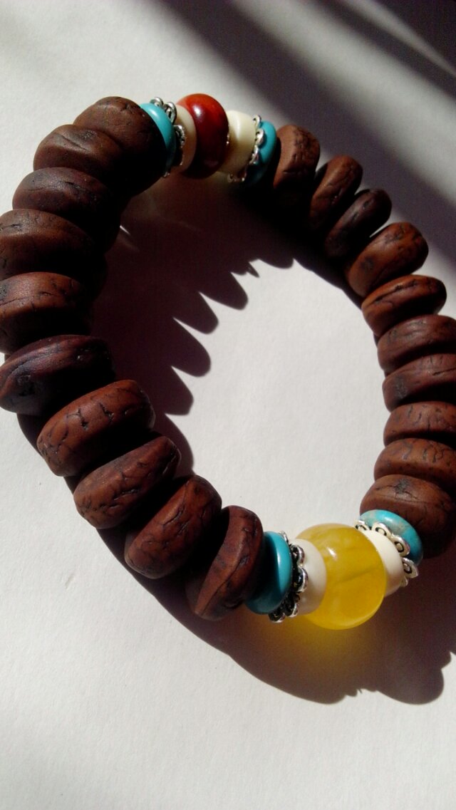 原创金刚菩提佛珠,主材质金刚菩提,天然原矿绿松石,南红,黄蜜。