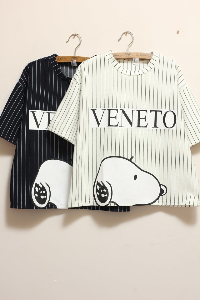 2014夏季新款韩国东大门百搭竖条纹史努比纯棉T恤