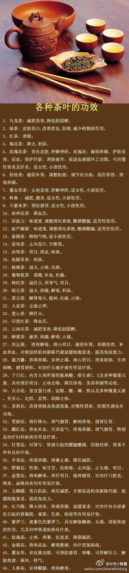 【女孩必知的各种茶叶的功效】