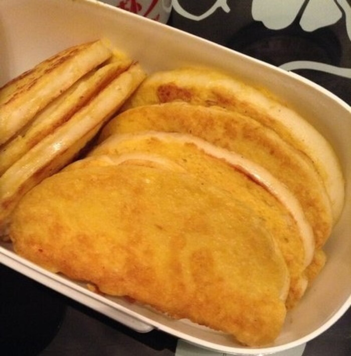 【蛋煎馒头片】1.馒头切片,鸡蛋加盐调匀;2.锅内入少许油,小火至八成热;3.馒头片裹上鸡蛋液入锅,小火煎至两面金黄即可。