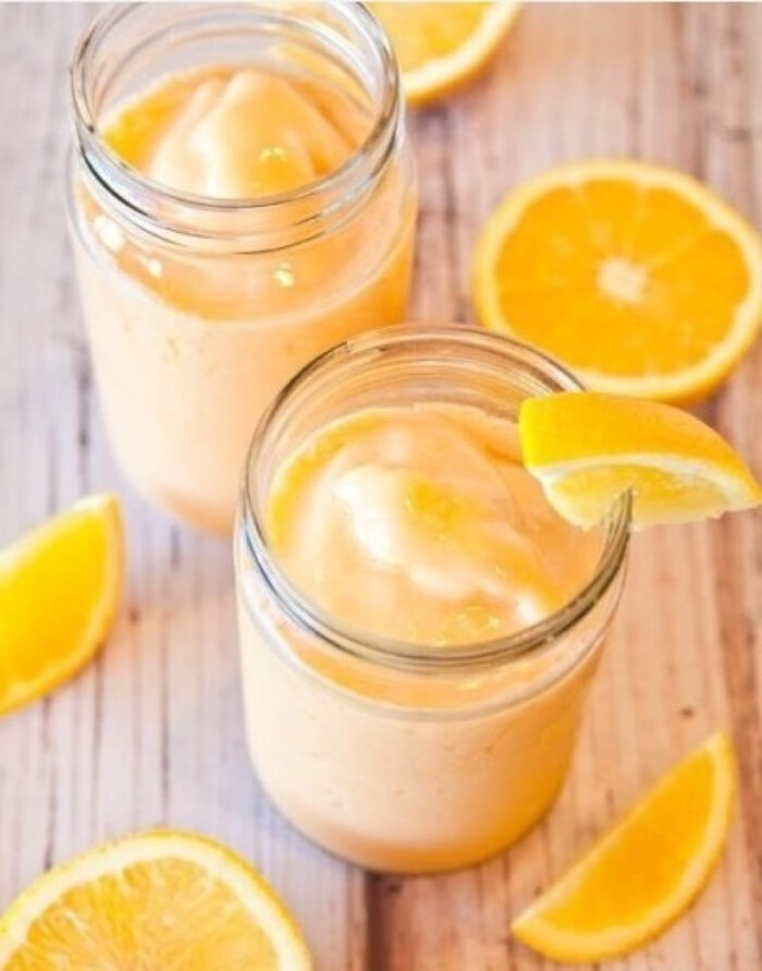 【柳橙冰沙】材料:1罐浓缩橙汁、1杯牛奶、1/2杯糖、1/2茶匙香草精、2杯冰块;做法:将所有材料放入果汁机搅拌均匀,可以依个人喜好调整冰块及甜度,倒入杯中柳橙切片装饰。