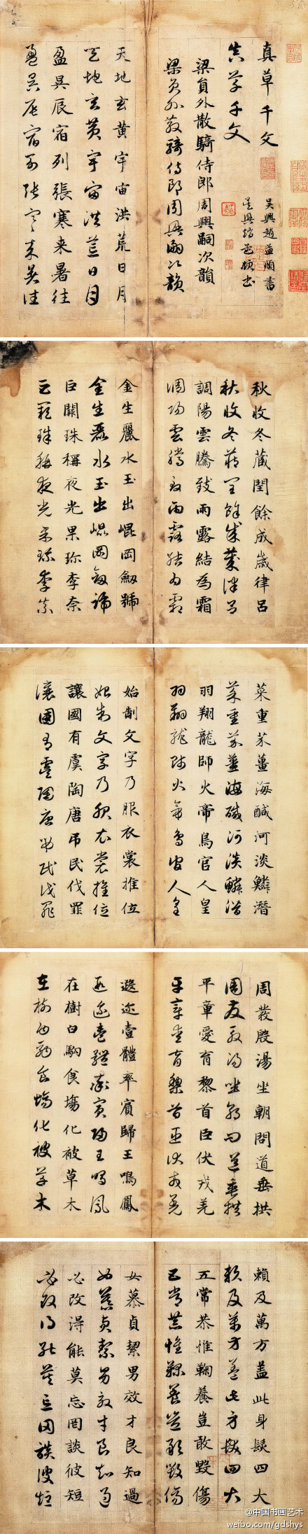 元 赵孟頫 《真草千字文卷》--- 赵孟頫善篆、隶、真、行、草书,尤以楷、行书著称于世,与颜真卿、柳公权、欧阳询并称为楷书“四大家”。此作未署书写年代,其用笔极其温润圆劲,点画精到细腻,结字妍美简静。上海博物馆藏品。