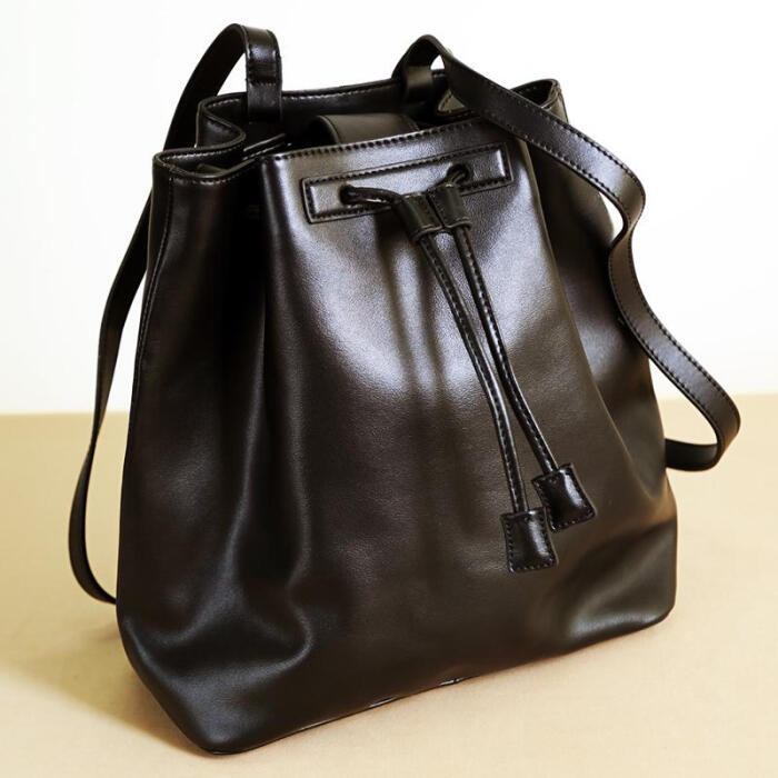 欧美风街拍时尚百搭OL通勤女包双肩背包水桶包真皮单肩包