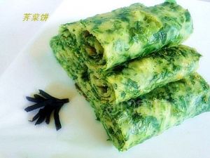 荠菜饼 1把荠菜摘去黄叶和老叶。 2锅内烧开水,把洗净的荠菜放入锅内烫一下。 3烫好的荠菜捞出控去水。 4然后把荠菜剁碎置于碗中。加入盐和鸡蛋搅拌均匀。 5再把面粉放入碗内搅拌均匀成糊。 6平底锅置火上,加入少许色拉油。6成热时倒入少许面糊并摊薄。 <br />7在烙制的过程中,最好盖上盖子。这样便于烙熟。并且可以只烙一面即可。 <br />8把烙好的饼切去不整齐的边摆盘,并配上黑玫瑰小咸菜即成。(切去的边角料被我先尝鲜吃掉了)