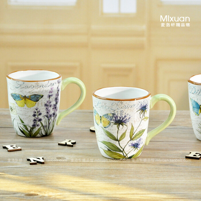 美国Certified International品牌系列 彩绘蝴蝶风信子 薄荷 油菜花 花卉田园马克杯,美式咖啡杯。3款选择。优质陶瓷制成,多种手绘着色设计;质地细腻,欧美高档陶瓷,特色 创意礼物首选!
