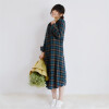 春装森女小清新长袖格子裙文艺范儿连衣裙学院风长裙衬衫裙