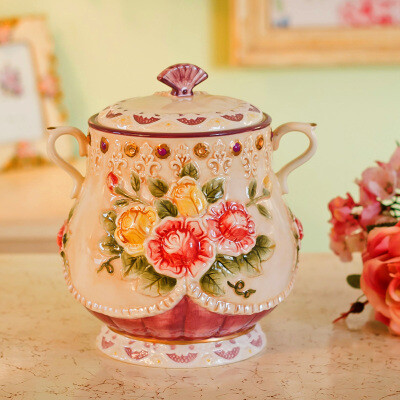 田园手绘陶瓷储物罐 密封罐欧式高档 家居摆件装饰实用创意收纳罐