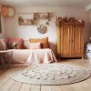 以粉色为主调的儿童房,粉色帐篷为卧室提升活泼氛围,羽毛灯,墙上的一串装饰,挂钩争相斗艳