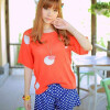 这款针织衫搭配波点短裤,更是清新时尚,还能达到撞色的效果。宽松的针织衫,橘黄色,温暖的色调,很舒适,看起来心情很好哦。下身宽松的短裤,清新的蓝色,亮的很抢眼。