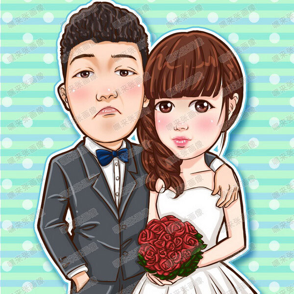 【嘿来张画像】婚礼漫画设计 手绘Q版 电子喜帖 双人婚礼情侣头像