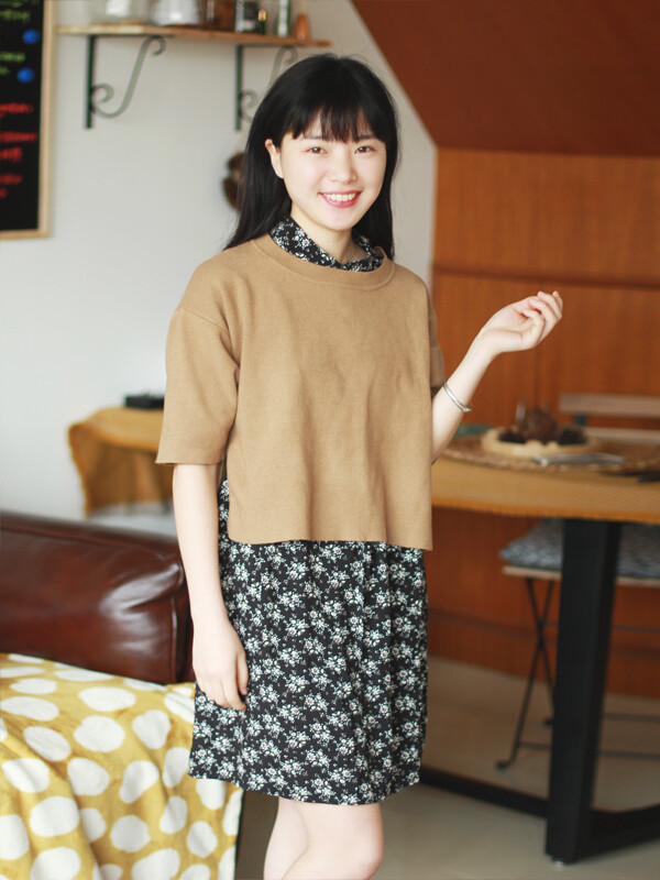 非常有文艺气息的一款碎花连衣裙,宽松的款式,垂坠感很好,小碎花也十分别致,无论是单穿还是打底搭配针织衫外套都十分好看上衣宽松短款版型,侧开叉是设计的小心机,搭配裙子、哈伦裤都十分有味道,休闲而又不缺小心思。