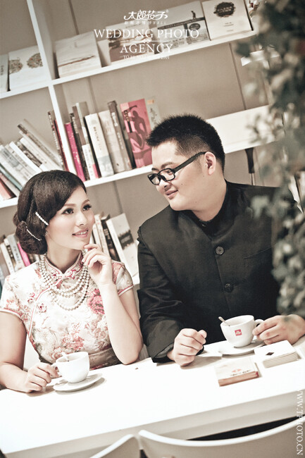 印花粉色花朵短袖旗袍搭配珍珠项链,永远最经典的组合。就好像旗袍是中国女人的象征,男人的象征则是中山装。