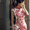 红色印花双喜字白底无袖短款婚礼旗袍,梳一个复古一点的发型,找一个老房子,顺时就回到了二三十年代的上海滩