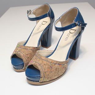 欧美厚底防水台鱼嘴民族风凉鞋 夜店撞色粗跟高跟鞋 镂空单鞋女鞋