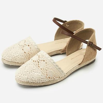 日系森女系麻绳蕾丝包头平底透气凉鞋女鞋