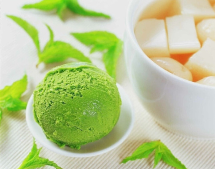 自制绿茶冰激凌 原料: 蛋奶浆1/2量、炼乳2大匙、淡奶油100g、绿茶粉10克。 做法: 1、热蛋奶浆中加入绿茶粉,搅拌均匀,然后冷却; 2、加入稍微打发的淡奶油,混合均匀,入冰箱冷冻。 3、每隔45分钟取出用勺子翻一下。至少重复三次。 然后在冰箱放一下就可以享用了