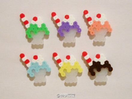 来一组夏日甜品冰激凌~六角星六边形板子不仅能出美美的雪花 还做得一手好冰激凌啊~#拼拼豆豆#