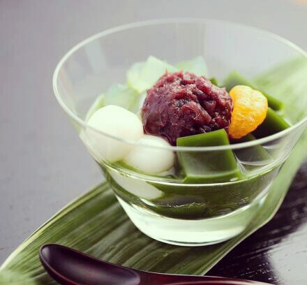 『抹茶凉粉』 用料 白凉粉100g 白糖 红豆 抹茶粉适量 水果适量 水1000ml 做法 将白凉粉100g倒入碗中,加入适量白糖,抹茶粉搅拌均匀;加入200ml凉水;把剩下的800ml的水煮沸,倒入糊状凉粉,倒入沸水时要边倒边均匀地搅拌浆液,至浆液再次加热至沸腾;用将煮好的凉粉浆倒入容器,自然冷却成后用切成小块,加入水果,红豆即可。