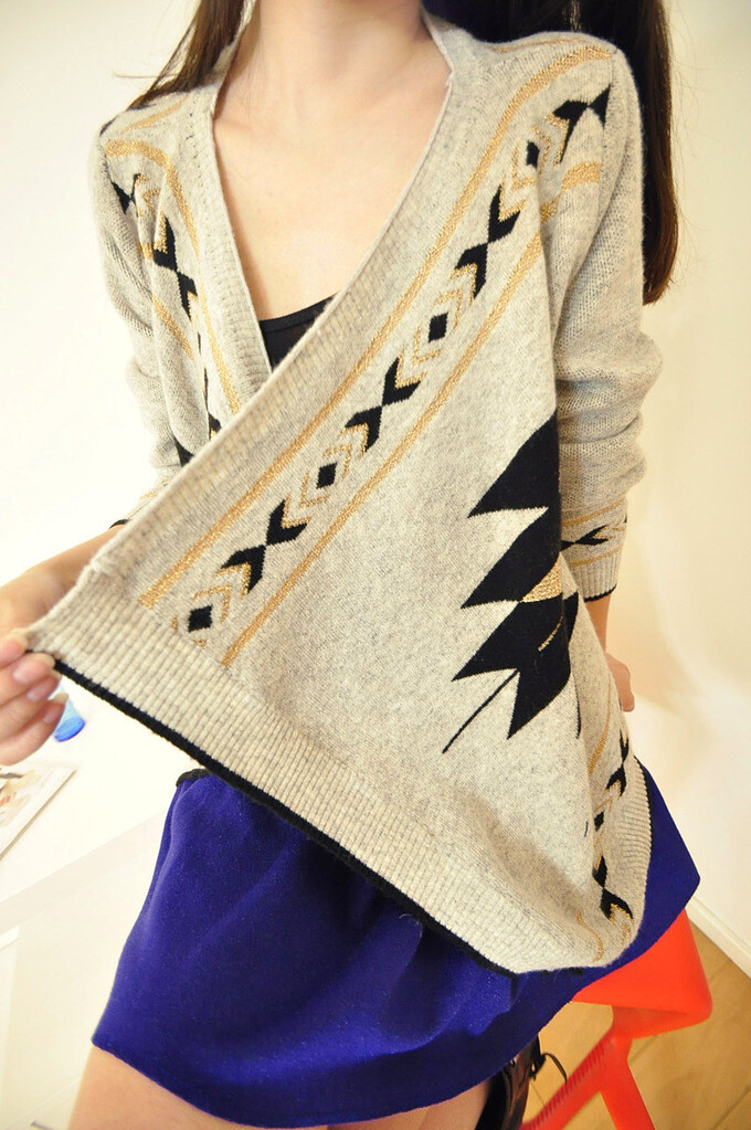复古民族风几何拼色兔羊毛线针织衫毛衣披肩开衫