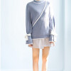 复古甜美森系花朵珍珠钉珠打底圆领套头宽松毛衣
