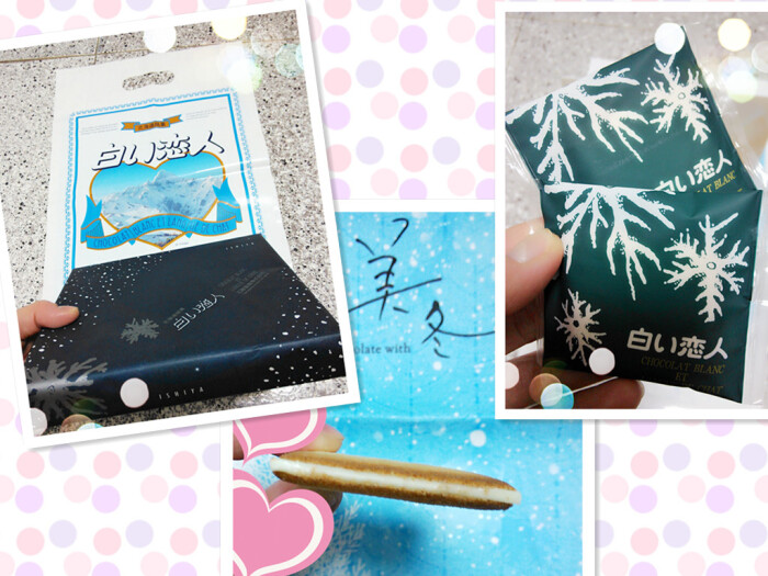 【北海道名产 白色恋人】 这款白色恋人是12枚装的,包装完好,属于拿到手就可以直接送人的礼物型,赏味期限只有4个月左右!吃起来有点像曲奇饼干,中间的夹心不是白奶油,而是实实在在的白巧克力,香浓不甜腻,很好吃哦!但是价格在零食界也属于偏高的,在大阪,12枚加上送料费要达到60RMB一盒哦!