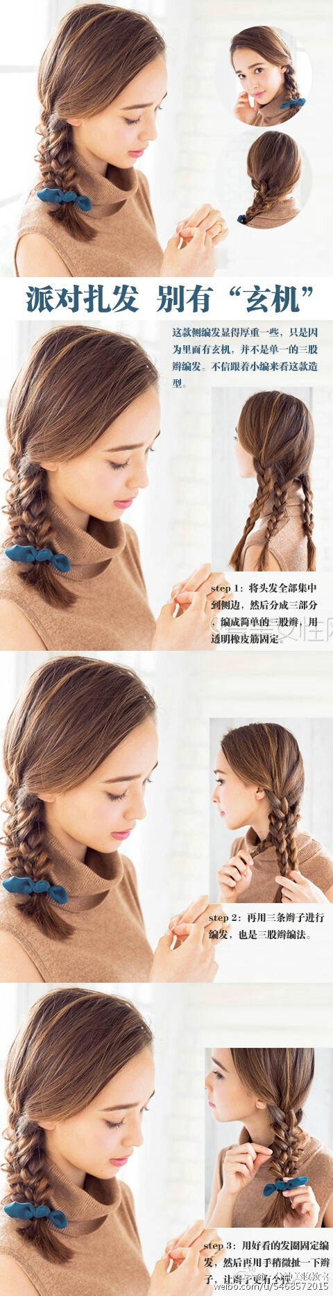 这款侧编发显得厚重一些,只是因为里面有玄机,并不是单一的三股辫编发。不信跟着小编来看这款造型。