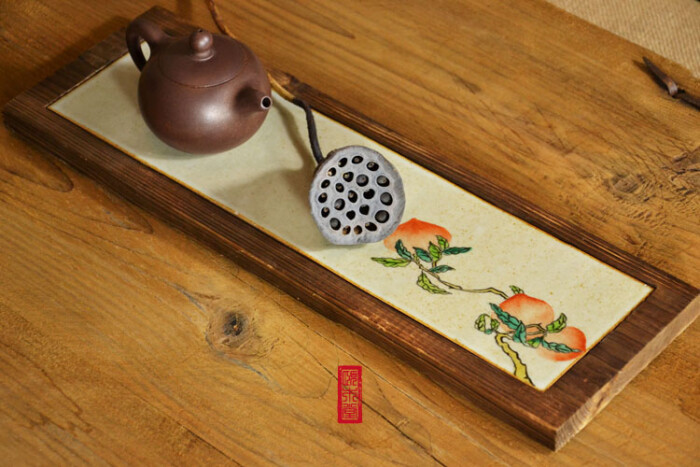 颐木堂日式粗陶茶盘 创意仿古木陶瓷干泡盘 手工茶台 壶承茶托盘 手绘 仿古木粗陶