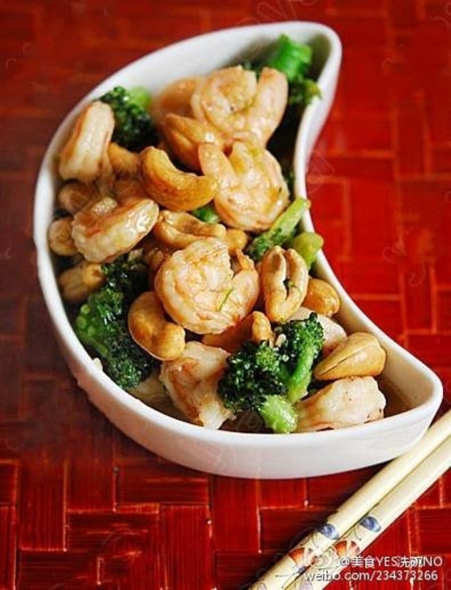 【西兰花腰果炒虾仁】做法:1、西兰花掰成小朵,淡盐水里泡一下;虾取出虾线,用料酒,盐,黑胡椒碎腌制5分钟。 2、西兰花过水焯熟捞出。 3、锅内烧热油下腰果慢慢煸至表面金黄。4、锅内少许油烧热下蒜末炒香,倒入虾仁。 5、下西兰花炒匀,倒入耗油。 6、倒入水淀粉勾芡出锅前倒入腰果炒匀!