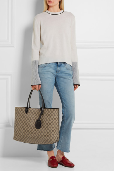 Gucci 这款名为 “Turnaround” 的“双 G” 印花皮革手提包运用正反两用的设计,将平滑的黑色皮革内里外翻后,即可令它呈现截然不同的样貌。内部不设口袋,让你拥有足够的置物空间收纳日常必需品,并随附一只可拆式行李牌。不妨在搭机时,将这款既时髦又实用的包袋作为手提行李带上飞机。