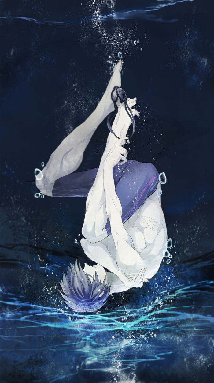 【此间少年】二次元 美少年 Free! 男子游泳部 七濑遥 冷色调 水下场景 梦幻 意境 灵动 空灵 手机屏保壁纸 动漫 P站 插画 唯美