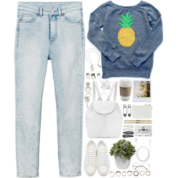 A fashion look from June 2016 featuring gray crewneck sweatshirt, Monki and leather low top sneakers. Browse and shop related looks.