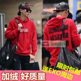 EXO朴灿烈鹿晗世勋机场同款连帽加绒卫衣sup字母外套头衫男女秋装