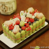 从下至上:巧克力蛋糕~开心果泥配抹茶幕司~巧克力蛋糕~树莓幕司~上面还有华丽丽的马卡龙~~~~心好动!!!