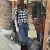 格子衫、及膝长靴,帅气的英伦范儿。-WViMm-图片