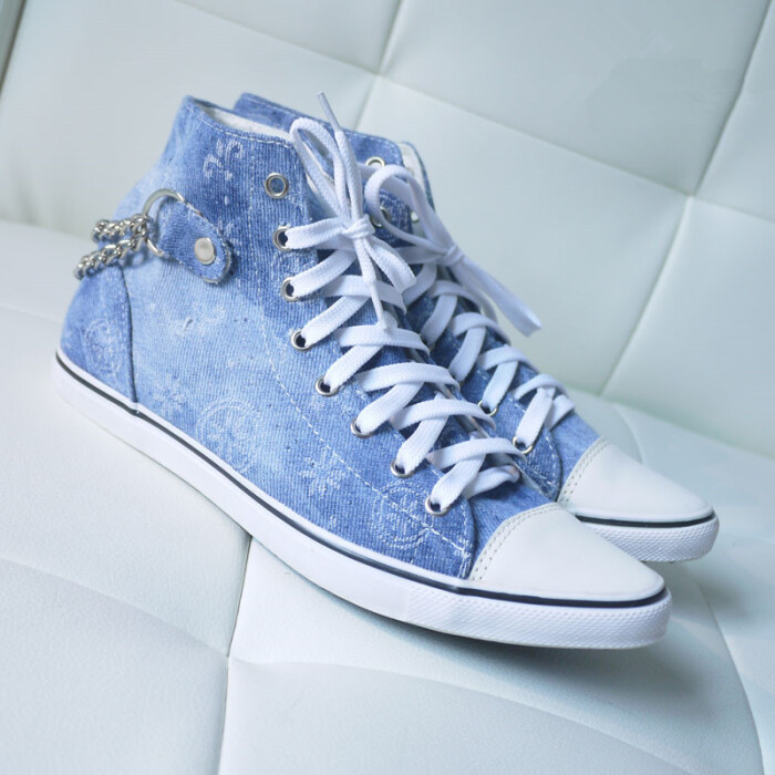 SLVJOY疯狂回馈欧美风明星最爱牛仔金属链子高帮单鞋