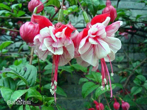 倒挂金钟别名:灯笼花、吊钟海棠。原产墨西哥,广泛栽培于全世界,在中国广为栽培,尤在北方或在西北、西南高原温室种植。盆栽适用于客室、花架、案头点缀,用清水插瓶,既可观赏,又可生根繁殖。倒挂金钟的花语:相信爱情、热烈的心。