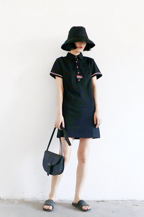 复古学院风chic风翻领修身百搭黑色polo衫连衣裙短裙小黑裙女