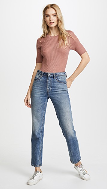 在 J Brand 看来,“Wynne” 系列的裤型设计前卫无比。其中这款被誉为 “true denim” 的版本采用高腰直筒裤形,九分裤脚下微露脚踝,恰到好处又不至于太过刻意。正因重视细微处的调整,无论你如何穿搭,这件裤装总能为整体造型增添清新而现代的气息。
