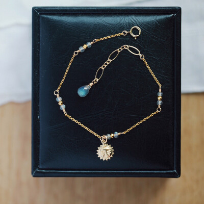 定制 Cloudcity暮晨之时 拉长石太阳14K包金手工手链脚链 百搭新款包邮