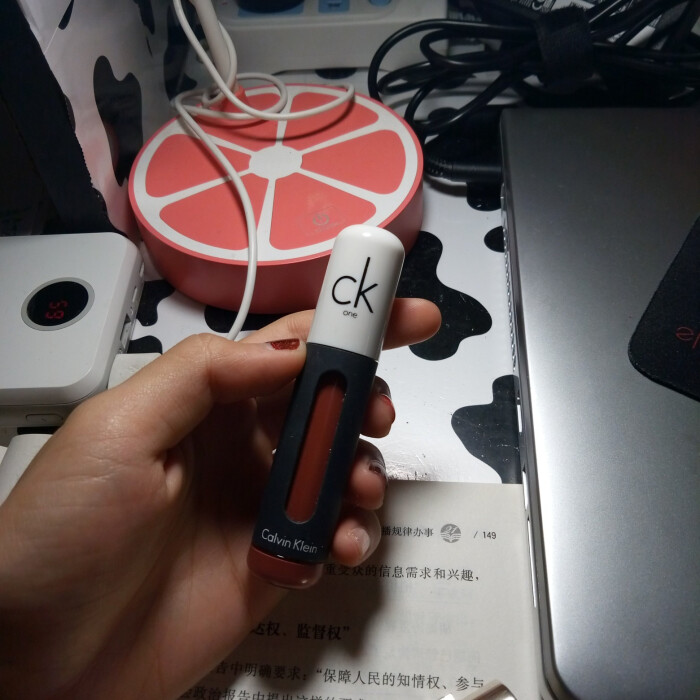 ck家也出口红了 也是17年夏天出的 巧克力味道很浓 这个是那种很浓的唇釉 很红 偏欧美风的那种酒红 还蛮霸气的 持久度是真的ok 但是很容易掉 它神奇的地方就是怎么掉都会有颜色!