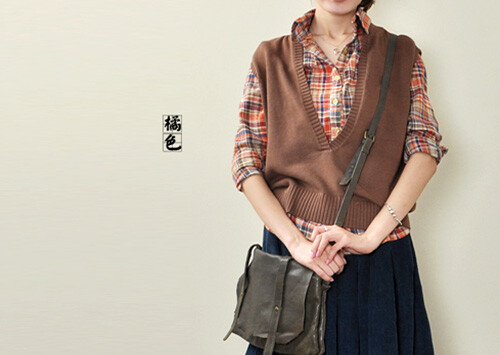 独上织造2013秋装新款女衬衫格子衫纯棉起绒全棉衬衣文艺范1301cy
