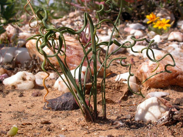 原po主 ktvamp(US) 只对他种植的这株植物介绍为Trachyandra sp。又和弹簧草的学名不同,不知道具体名字真捉急,这样如同薄荷绿奶油被挤出的感觉真是太有趣了!有种清凉消暑的视觉效果