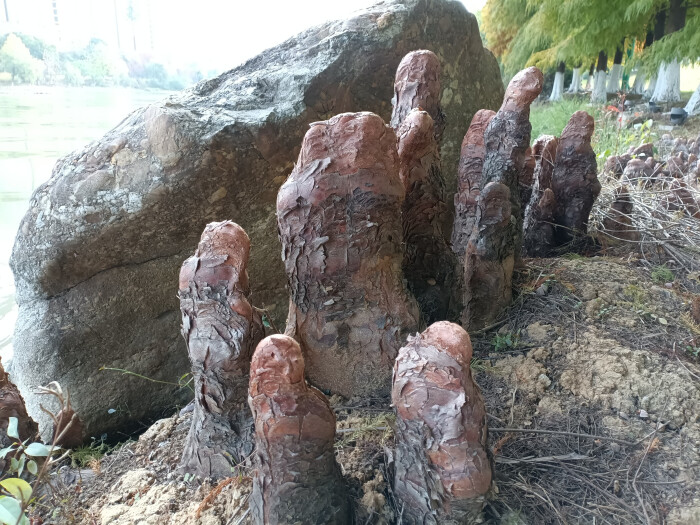 落羽杉的膝状呼吸根,生于水边,形态奇特!