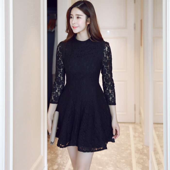 简洁的圆领,微露锁骨,纯色款式,拉链设计,实用性很强,裙子褶皱处理,上身很漂亮