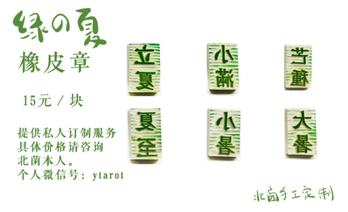 [cp]北菌新作。《绿绿的夏天》系列明信片。全手工刻章,全手工印制。预售ing[doge] 有意请私信北菌本人[偷笑]
