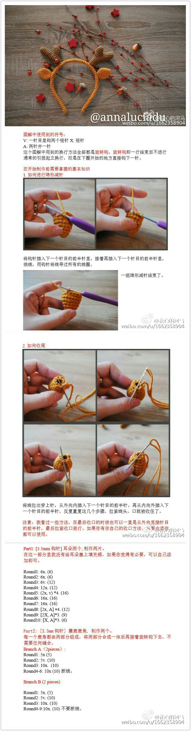 花心的河马 小鹿发箍教程 毛线钩编 编织 钩花