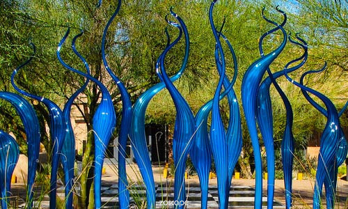 德州大学奥斯汀校区布兰顿博物馆外的缤纷针织树木-jY2MT-图片